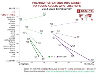 Onderzoeksbureau Glocalities komt met een wake-up call. In de afgelopen tien jaar is internationaal een toename zichtbaar van gevoelens van hopeloosheid en maatschappelijke ontevredenheid onder zowel jonge mannen als jonge vrouwen (18 - 24 jaar). Deze toename komt ook voor onder burgers van 25 tot 34 jaar en in mindere mate onder burgers van 35 tot 54 jaar. Tegelijkertijd zijn mensen boven de 55 jaar over het algemeen hoopvoller en tevredener geworden met de samenleving. Het onderzoeksbureau biedt echter ook handelingsperspectief en komt met kansen voor een gedeelde maatschappelijke en politieke agenda.